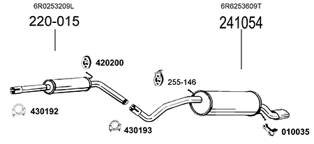 ショートホイールベース車に装着する場合はリアマフラー前側を400mm切断し、クランプではなくスリーブ(265-127)で接続してください。 |